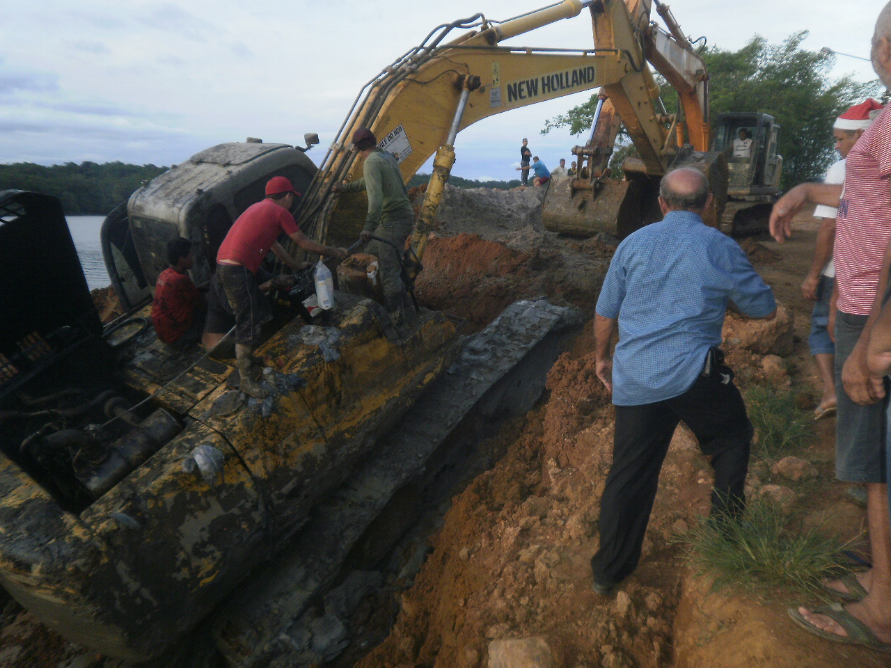 Com habilidade, coragem e determinação dois operadores de maquinas pesadas conseguiram retirar a retroescavadeira que se encontrava atolada desde a semana passada. O trabalho contou com a participação de mecânico, eletricista e outros ajudantes que se empenharam em colocar a maquina para funcionar, enquanto que um dos operadores fazia os trabalhos de retirada da lama envolta da retroescavadeira atolada, trabalho este que facilitou o resgate da maquina pesada que já em funcionamento e puxada pela outra conseguiu sair do local.