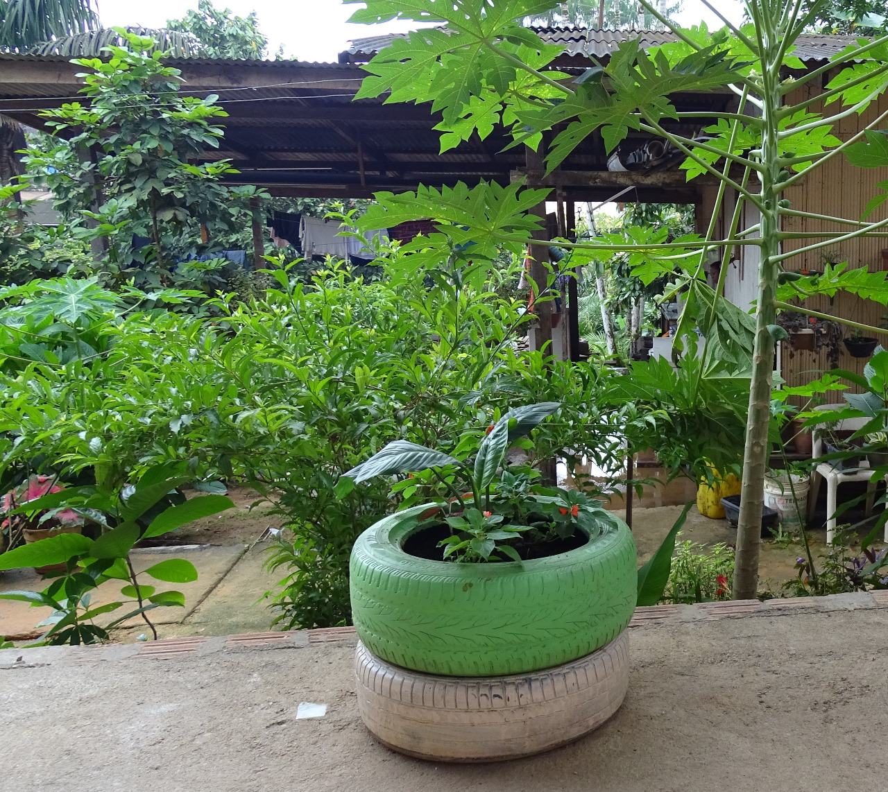Visitamos a residência da professora Delcinda Paixão, e nos deparamos com uma pratica ambiental exemplar, a professora ocupa alguns momentos do seu dia a dia cuidando das plantas. Criativa, com o auxilio do esposo Dorismar da Paixão, montou estantes, adequou pneus, fixou caqueiros na parede, fez um cercadinho e plantou. Conseguimos algumas imagens estáticas dessa boa ação tão benéfica ao meio ambiente, que segundo a professora além de embelezar a área livre da sua residência é uma grande terapia com resultados satisfatórios. Esse exemplo é uma prova de que ideias simples somadas à boa vontade de realizar torna o ambiente bonito e agradável. A dica do site é essa para você internauta, copie a ideia fazendo o mesmo na área livre da sua casa.